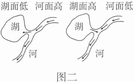 丰水期:当河面高于湖面时,河水入湖,使河流径流量变___小___。