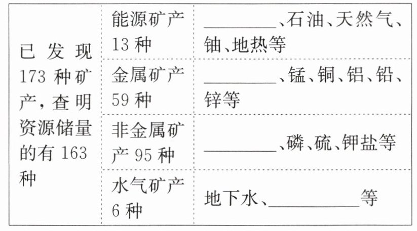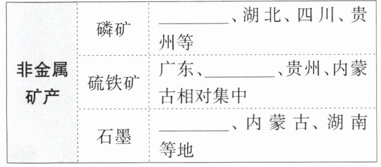 (3)分类:按其特点和用途,可分为____矿产、非金属矿产、能源矿产等。