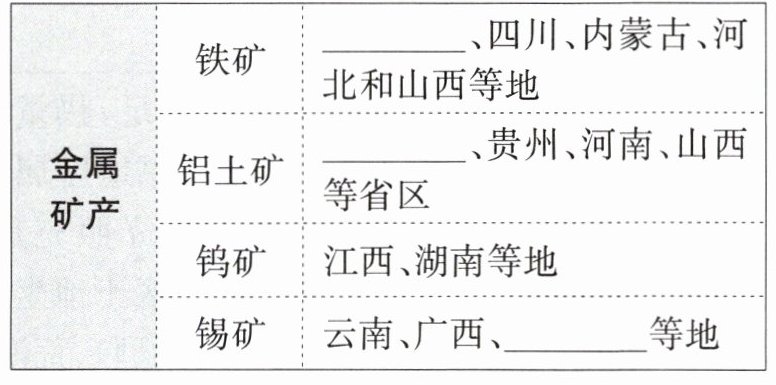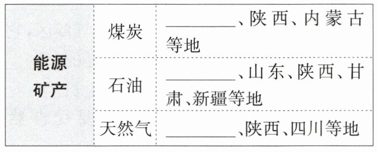 (1)能源矿产:主要分布在____、华北和东北地区。