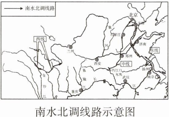 (2)南水北调东线工程起点位于江苏扬州附近,可依托原有水道______调水,抵达缺水严重的华北地区。中线工程从长江最大支流______引水,沿伏牛山山麓和太行山山麓北上,全程可实现______向北到达北京和天津。