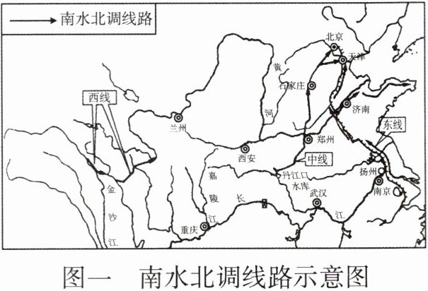(1)跨流域调水是缓解水资源地区分布不均的有效办法之一。中线:水可以自流到达北京和天津,分析水可自流的原因: