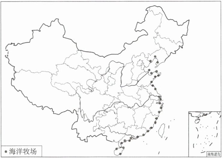 8.A [解析]海洋牧场建设必须临海,而④江西省不临海,无法建设海洋牧场,排除④;读图可知,海南省、福建省、山东省均有海洋牧场分布,①②③符合题意。故选A。 9.B [解析]建设海洋牧场有利于促进海洋经济发展、合理利用海洋资源、保护海洋生态环境,①②④正确;建设海洋牧场无法扩大我国海洋国土,③错误。故选B。