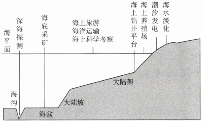 )①提供旅游场所 ②发展海洋运输 ③台风带来降水 ④进行海底采矿