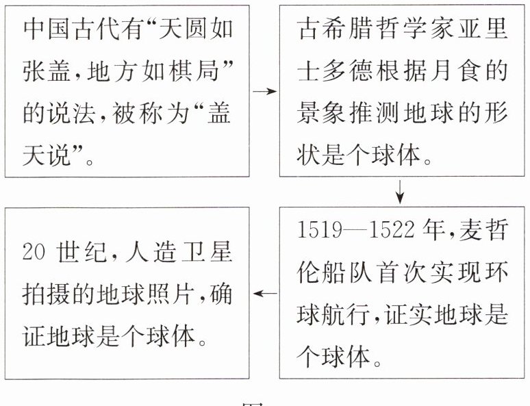[教材变式题](青岛中考)人类对地球形状的认识经历了漫长的过程。图一示意人类对地球形状的认识过程,据此回答1~3题。
