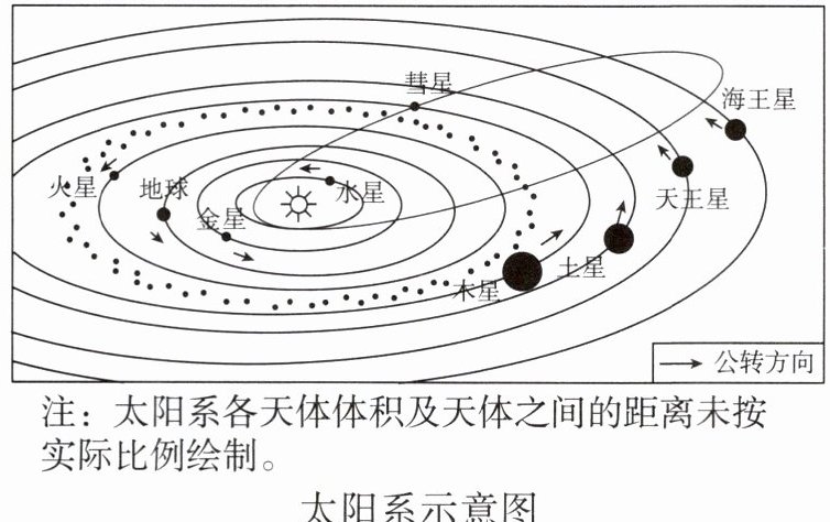 注:太阳系各天体体积及天体之间的距离未按实际比例绘制。