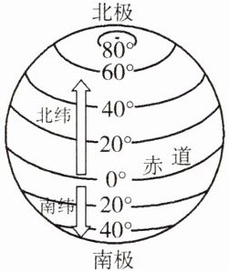 纬度从赤道向两极逐渐增大,向北增大为北纬(N),向南增大为南纬(S)。