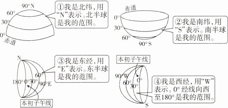 4. 学完了经纬线和经纬度,你对它们很熟悉了吧!下面是它们的自我介绍,请指出谁的表述错误(