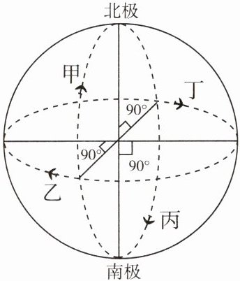 7.A 8.D [解析]在地球仪表面,与地轴垂直并环绕地球一周的圆圈,叫纬线,纬线指示东西方向,因此,四架飞机在不改变方向的情况下,能回到原点的是乙和丁,甲最终会飞到北极点,丙最终会飞到南极点。故选D。