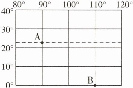D [解析]在地球仪表面,连接南、北两极并垂直于纬线的弧线,叫经线,所有经线都相交于极点,都是半圆且等长;在地球仪表面,与地轴垂直并环绕地球一周的圆圈叫纬线,纬线是相互平行的,长度从赤道向两极逐渐缩短(两极为点),故A点所在纬线比B点所在纬线短。