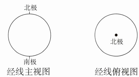 (3)剥开橘子,观察橘瓣(代表经线)形状,在下面绘经线的主视(从侧面观察)图、俯视(从北极上空观察)图。