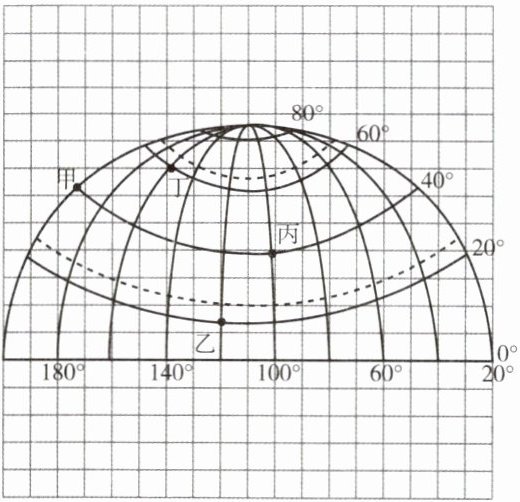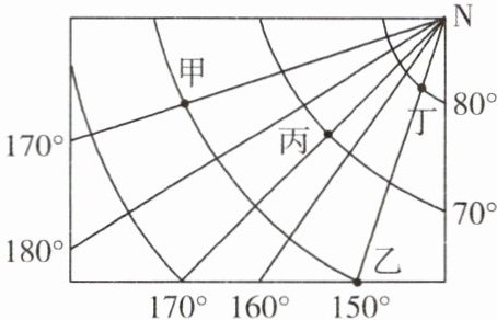 7. 关于甲、乙、丙、丁四地的相对方向,叙述正确的是(