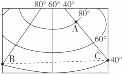 3. 一架飞机从 B 点沿着虚线一直飞往 C 点,方向的变化是(