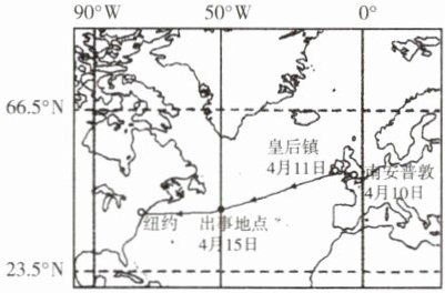 [新情境]读某轮船遇险位置示意图,回答 3~4 题。