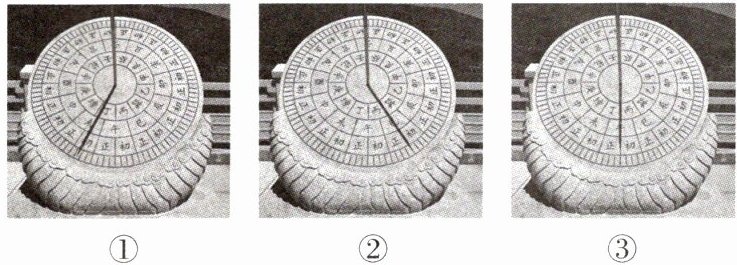 13. 烟台的小明对校园中的日晷进行了观测。以下是他在一天中同一位置不同时刻拍摄的照片。按拍摄时间早晚将照片排序,正确的是(