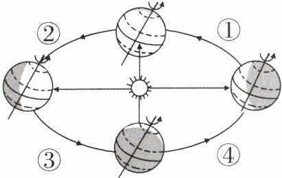 10.B [解析]用手指从左向右拨动地球仪使其转动,演示地球的自转运动;围绕着灯泡逆时针移动地球仪,演示地球的公转运动。11.D [解析]读图可知,图中北极圈及其以内区域灯光照射不到,说明这里有极夜现象,由此判断,此时灯光直射南回归线,为北半球的冬至,北半球昼短夜长,北极圈及其以内有极夜现象,图中所演示的日期大约为12月22日。
