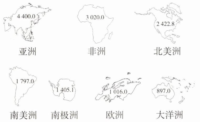 (1)大洲的名称与大小:按面积由大到小分别是______、非洲、北美洲、南美洲、南极洲、欧洲和______。