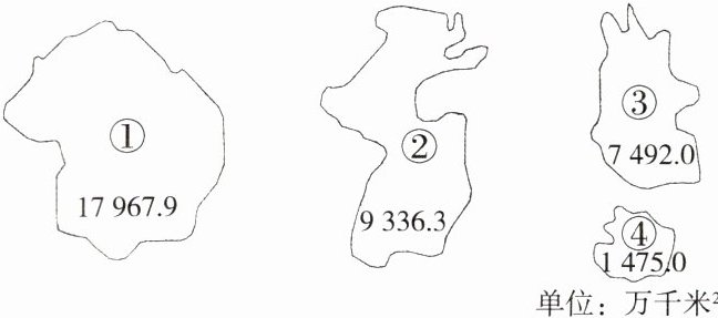 3. 千岛群岛所在大洋对应的轮廓和面积示意图是(