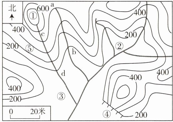 (3)ab 自西北向东南 ab段等高线数值西北高东南低。