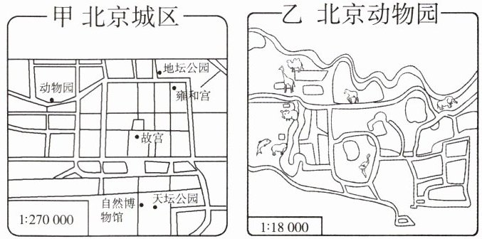 4. 小薇在北京动物园游览时,看到了两幅地图。请你帮她作出正确判断(