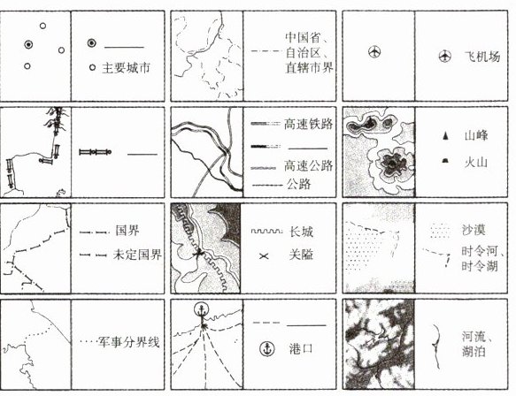 (1)定义:图例一般附在地图上,它是地理事物或现象在地图上的______;注记是地图上的文字说明,以及标明山高、海深等的______。