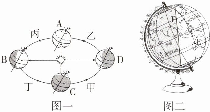__(甲或乙或丙或丁)处,此时 E 地正值____秋季