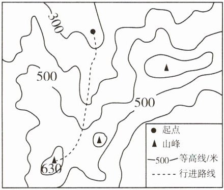 (青岛中考精选)某中学组织学生进行山区徒步活动,计划沿图中路线行进。下面为该地等高线地形图,据此回答 12~14 题。