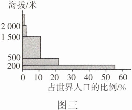 地区。(2)从地形地势上看,世界上的人口主要分布在海拔