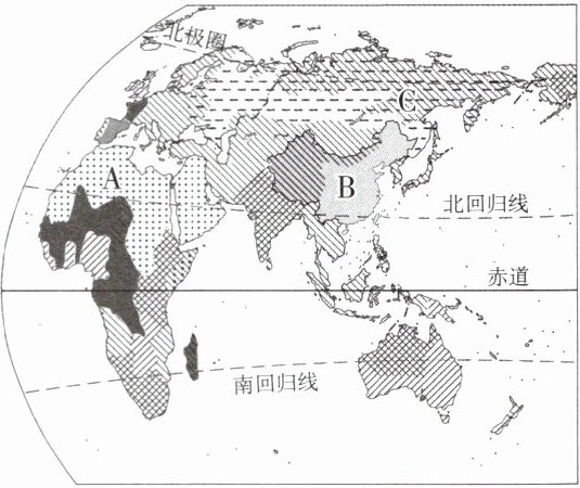 B. A 处居民主要使用阿拉伯语,和他们使用相同语言的还有亚洲东部的居民