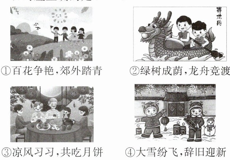 7. [核心素养]传统节日是传承中华优秀传统文化的重要载体。下图示意我国某地四大传统节日景观及习俗。图中景观及习俗与传统节日对应正确的是(