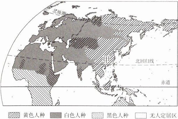 6. (湖南中考改编)甲地居民皮肤呈淡黄色、头发黑直、脸型宽平,他们属于(