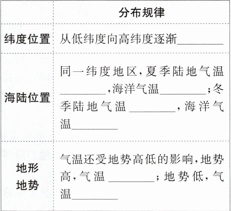 (2)①大 小 ②盆地 山地 2.降低 高 低 低 高 低 高 3.