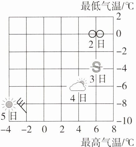 6. [跨学科]气温日较差是指一天中最高气温与最低气温的差。2—5 日气温日较差较大的是(