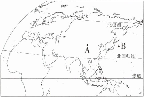 7. 下列关于图中处于同纬度的 A、B 两地的叙述,正确的是(