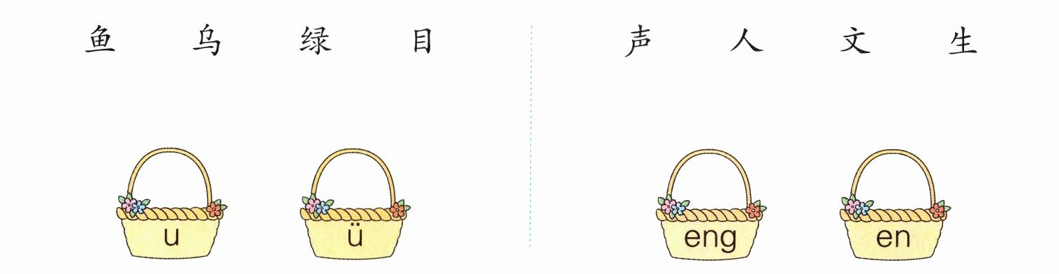 乌、目——u 鱼、绿——ü 声、生——eng 人、文——en