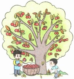 示例:红红的 黄黄的 摘苹果 捡落叶