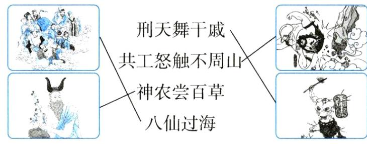 (7)阅读《中国古代神话故事》,把相应的画面与故事名用线连起来。(4分)