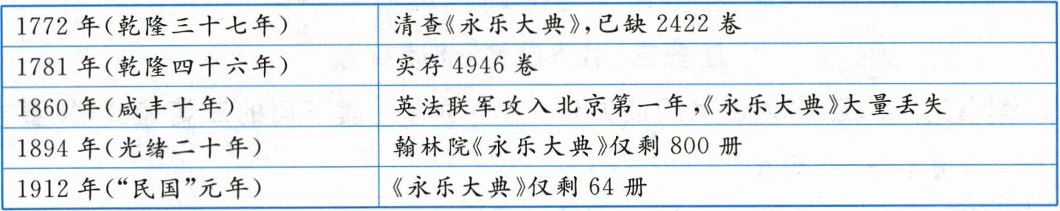 【材料三】明清易代后,《永乐大典》遭遇劫难,一万多本书遗失到只剩下几十本。
