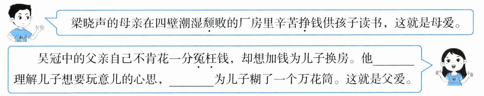 2. 在班会讨论环节,同学们围绕“父母之爱是什么”这一问题展开了讨论,请你参与,并完成练习。(11 分)