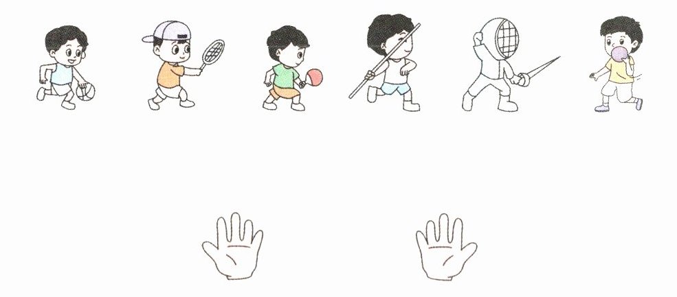1. 运动器材在运动员的哪只手上?请你连一连。(6分)