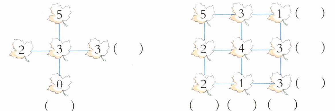 6. 把横行、竖行上的数分别相加,得数填在( )里。