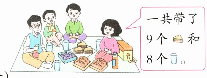 ① 现在一共有几个? ② 每人用了1个,还有几个没有用?