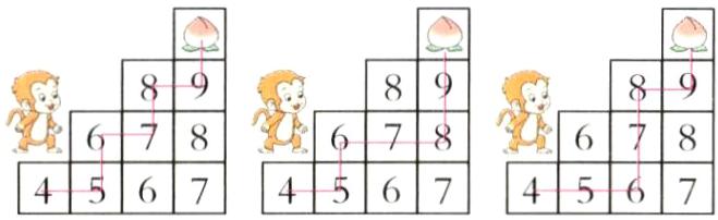 5. 小猴子按4~9的顺序走就能吃到桃子。想一想,一共有多少种不同的走法?