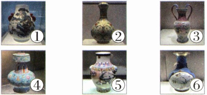 2. 亮点原创中国陶瓷博物馆中的瓷器种类繁多,样式精美'。乐乐周末去参观时拍了几张喜欢的瓷器并贴在相册簿中',如图。(圈一圈)(6分)