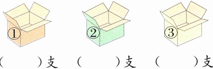 10. (2025·无锡新吴区期末)天天要把9支铅笔放进3个盒子里,要求①号盒子比②号盒子多2支,②号盒子比③号盒子多2支。该怎么放?