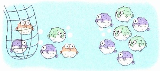 2. 原来有5条鱼,被捉走了( )条,又游来了( )条,现在一共有( )条鱼。