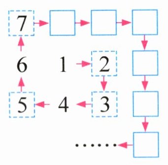 1. 新素养 创新意识 将数从1开始,顺次排成如图的螺旋形,其中2,3,5……处为拐点。(4分)