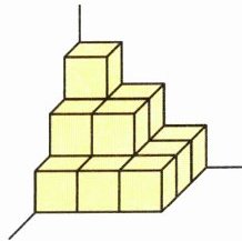 10. 右图是小明用一样大的小正方体靠墙搭成的。