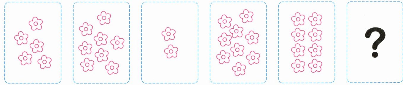 (4)从左边数,最后一幅图中花的数量最多,至少有( )朵。