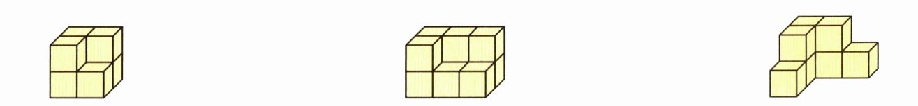 9. 下面的物体至少再添几个小正方体才可以拼成一个大长方体或大正方体?