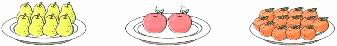 (1)梨有( )个,苹果有( )个,橘子有( )个。(3分)